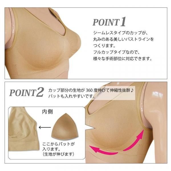 ●カップ部分の生地が360度伸びるためパットが入れやすいです。
